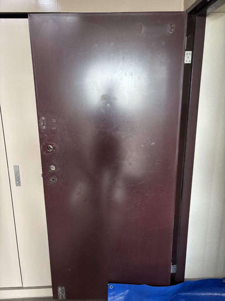窓フィルムクロス再生工房狭山柏原店です。今回のご依頼は、横浜市戸塚区のお客様より玄関ドア内側を一新したいとのご依頼で、ダイノックシートの施工にお伺いをいたしました。施工前は、経年での傷や汚れが目立っておりましたがしっかりと掃除をし、パールが買った白のシートを施工したところ新しいドアへと変わりました。使用メーカーは3M・使用シートはPS-010NEOです。